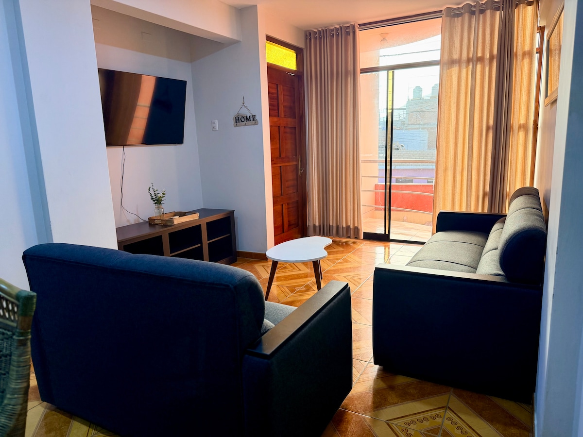 43平方米的舒適獨立公寓,有2間臥室、實用的浴室,配有獨立淋浴間和廁所,並配備小廚房。 適合家庭、情侶或商務差旅程。 位於安靜的地區,距離Chimbote市中心僅10分鐘路程,提供私隱和舒適的家居感覺。