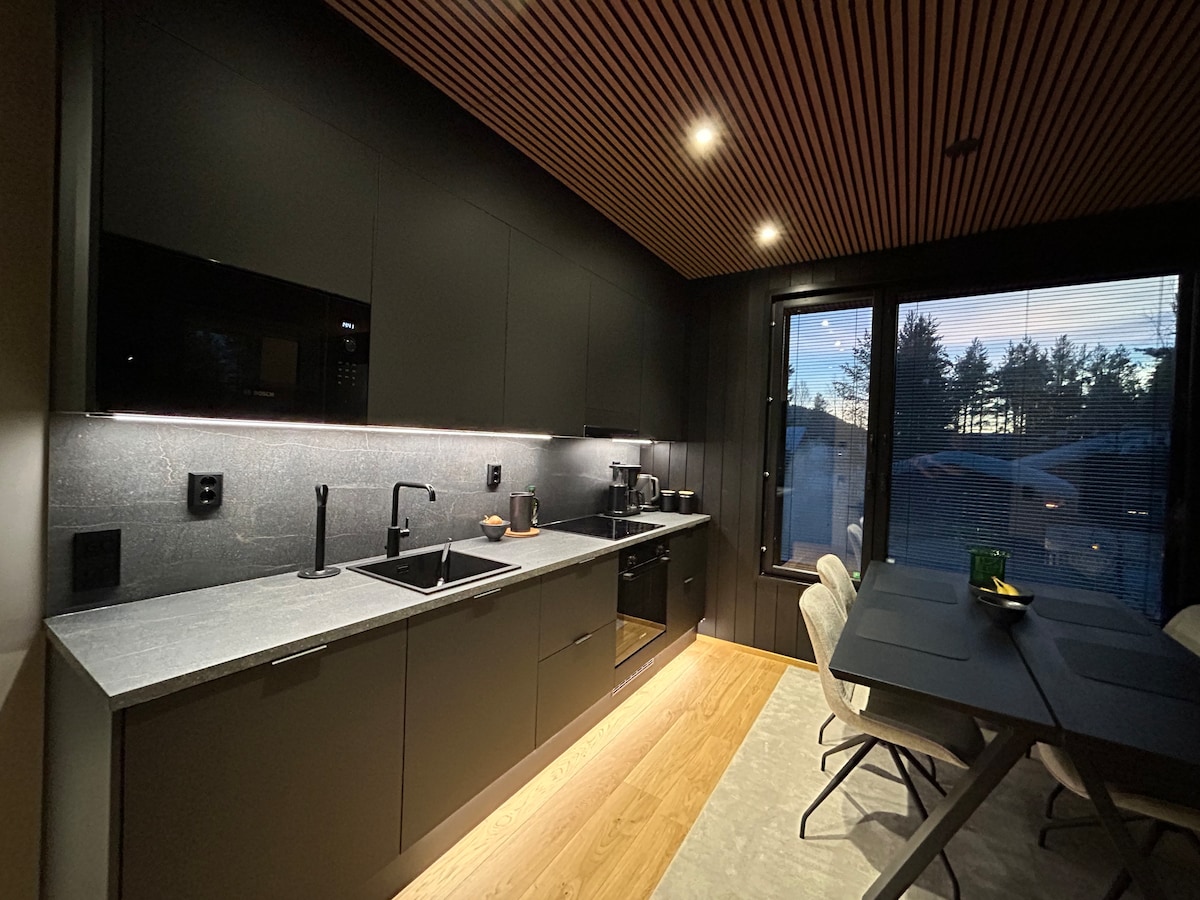 北極光區的北極新現代別墅是度假的好地方。 距離Levi 's市中心服務和最近的斜坡不到1公裏。 距離滑雪道約500米,雪橇從房子的後院出發。 別墅有3公尺,每間兩張牀,一間臥室配有閣樓「主臥室」,樓下有大型健身房/電影室,沙發可擴展。 這裡還有桑拿房和壁爐。 別墅配備了現代化電器和技術。