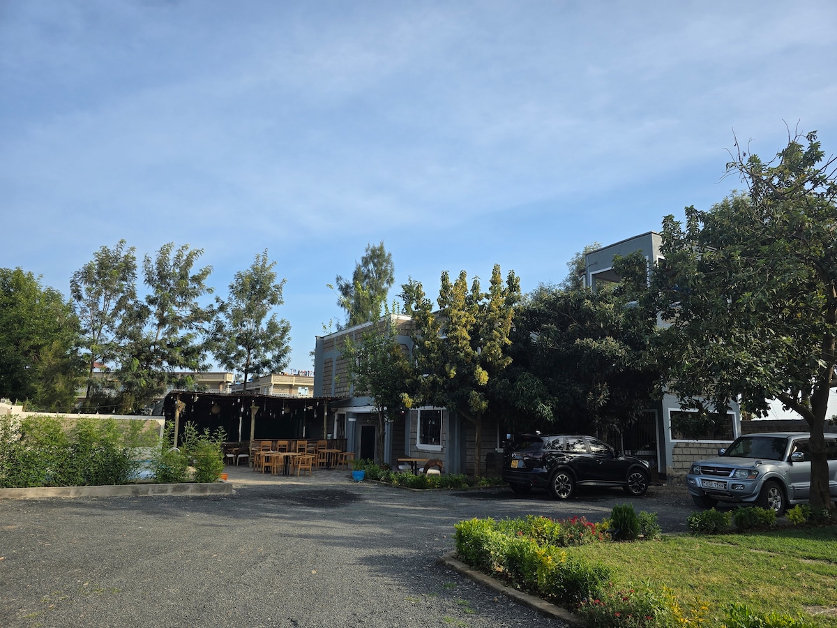 遠離嘈雜的城鎮的服務式公寓。寧靜的環境,可欣賞肯亞山的美景。 我們所有的單位都是自炊式,設備齊全的小廚房,適合您和您的家人在公寓內舒適地烹飪美食。