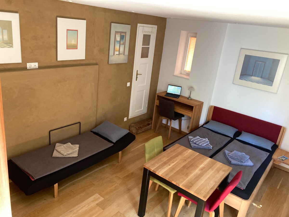 Bright and quiet studio in the basement (basement / basement) of our detached house Own bathroom with shower / toilet The kitchenette in the studio is equipped with everything to prepare small things: refrigerator, a stove, microwave with baking functions, kettle, coffee machine and toaster, ... Bed 2x90 / 200 cm No washing machine in the studio! The nearest laundromat is 10 minutes away by underground. away. Unfortunately, luggage cannot be stored or parked.