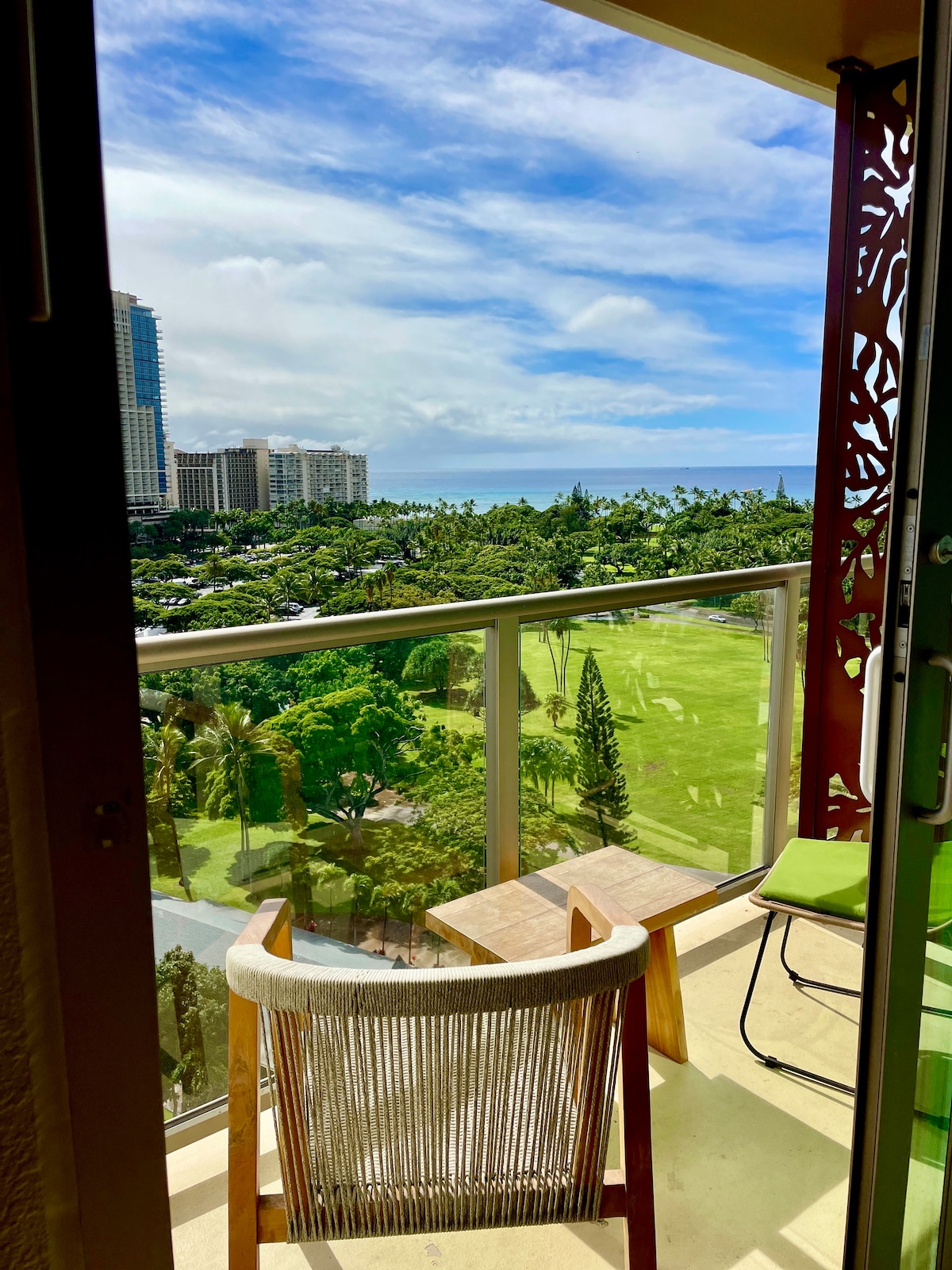 ALOHA! (2025年6月全面翻新/1個免費泊車位。 旅居內有高品質的淨水器,因此無須購買瓶裝水。 此地點位於威基基較為安靜的一面。 這是一個新翻修的單位,配備所有品牌家具。 位於12樓,500平方英尺,120平方英尺(大陽台),可欣賞城市景觀。輕鬆自助入住。寬敞,比大多數開放式一居室更大。 1張大床、1張全床和1張大沙發床,最多可容納5人。
