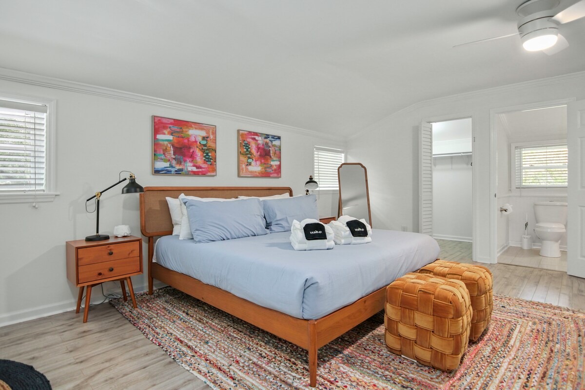 歡迎來到你的瘋狂天堂! 這間1940年代的海灘平房已經更新,配備現代化電器、全新豪華浴室、藝術品、衝浪板、60英寸4K智能電視,可供您訂閱、藍牙立體聲和巨大的室外淋浴間。 旅人喜歡擁有僻靜、全尺寸的物業,擁有極佳的戶外空間、停車位,並且步行即可到達海灘、酒吧和餐廳,價格與嘈雜的公寓相同。 適合想要真正老派風格的旅人。