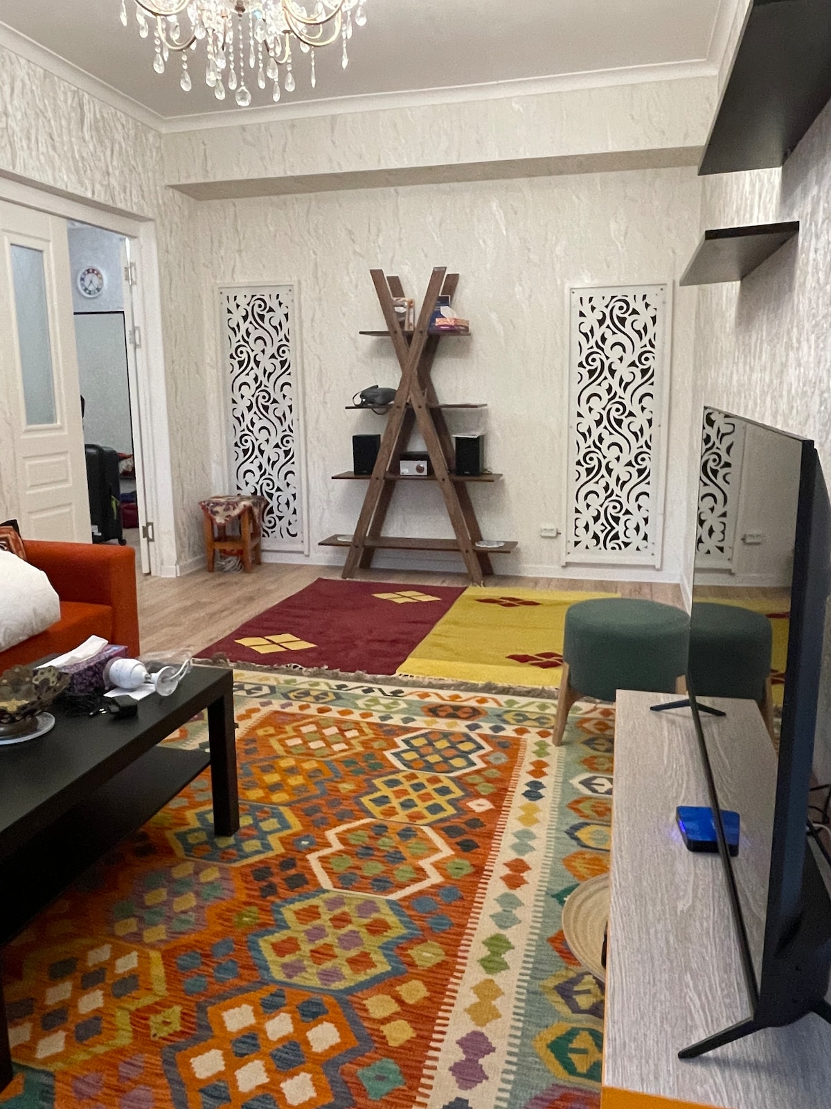 歡迎來到Granville Apartment Bishkek,這是尋求舒適和奢華的旅客的理想住宿。 配有通風系統、智慧照明、設備齊全的廚房、可收看 Netflix 的 55 吋電視、舒適的陽臺和專屬工作空間。浴室擁有高級裝潢和高端淋浴花灑。 這間公寓位於地標性的Erkindik Boulevard附近的高級社區,距離商店、餐廳、酒吧和中央商業區僅幾步之遙。