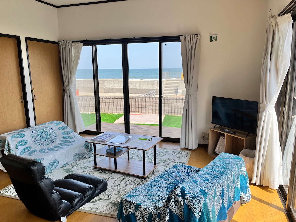 太平洋に面した白くてコンパクトな一軒家で5名まで宿泊できます。 オーシャンビューのベッドルームから目の前に広がる海と日の出を眺めることが出来ます。 ひたち海浜公園、阿字ヶ浦海水浴場、那珂湊おさかな市場、大洗水族な館などへの車でのアクセスも便利です。 (※注) 当施設でのBBQサービスの提供は終了しました。また周辺住民からの要請に基づき安全確保のため持ち込みでのBBQも禁止となっておりますのでご了承ください。BBQご希望の場合は「RIVERBANKひたちなか」のご利用をご検討ください。