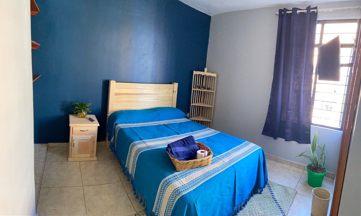 最近翻新的單間公寓,配有一張雙人床、獨立浴室和小廚房。 共用陽台俯瞰我們可愛的花園。房價包括全套早餐和每週兩次的客房清潔服務。位於市中心以北的街區霍奇米爾科(Xochimilco),步行15分鐘即可抵達旅遊區,步行5分鐘即可抵達公共交通工具。