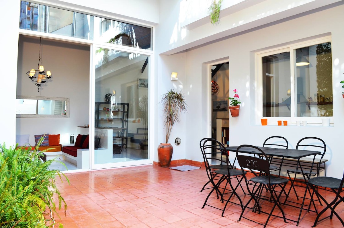 Best location. Near everything. Palermo Parks and the best restaurants and pubs of Palermo Hollywood. Subway and buses downstairs, also trains. Charming terrace with hot and cold water outside shower. Grill! Shops, Butcher"s, Grocery's, Bakery's, Drugstore's, and 24hs in the same block. Markets, shoppings, medical clinics.