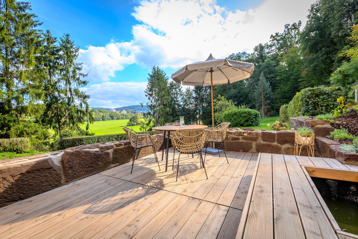 在「Rauschenberg」自然套房中享受不受打擾的放鬆:您在花園中的獨特桑拿房,配有獨立的放鬆室和全景觀露台,可欣賞富爾達和羅恩的壯麗景色。 舒適的箱式彈簧床保證您能安穩入睡,而設備齊全的小廚房配有陶瓷爐、冰箱(包括冷凍室)、鍋、陶瓷餐具和玻璃杯,讓烹飪成為一種樂趣。 豪華浴室設有雨淋式淋浴間,並提供優質化妝品。