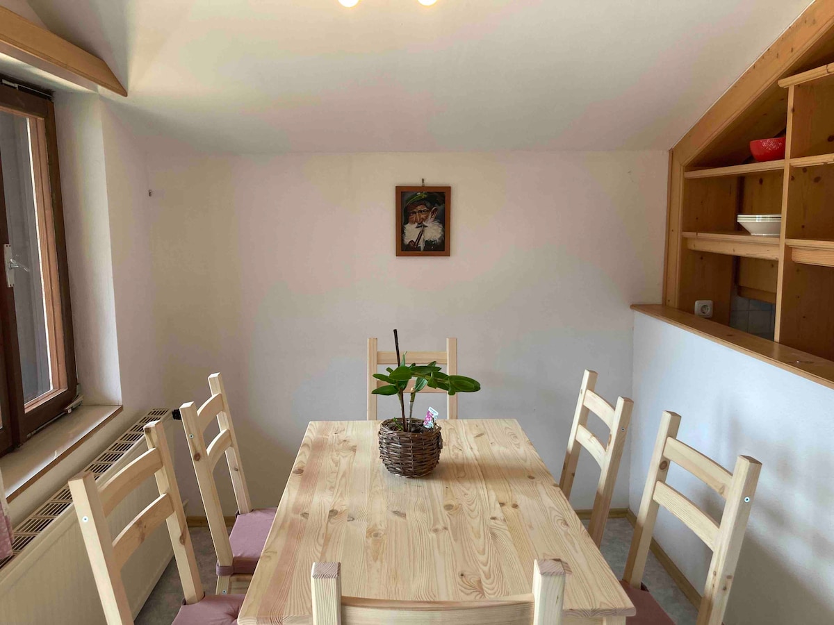 Gemütliche Ferienwohnung in Obertraun. Nur für Erwachsene. 1 Schlafzimmer mit Doppelbett. Nichtraucher. Keine Haustiere. WLAN kostenlos. Voll ausgestattete Küche, Bad mit Dusche/Wanne und WC. Balkon mit Blick auf Krippenstein. Parkplätze vor dem Haus (kostenlos). Entfernung nach Hallstatt: ca 6 km, zum Hallstätter-See ca 2 km, Krippenstein-Seilbahn ca 4 km. Tourismussteuer EUR 3,-/Person/Nacht ist nicht inkludiert und vor Ort in bar zu hinterlegen.