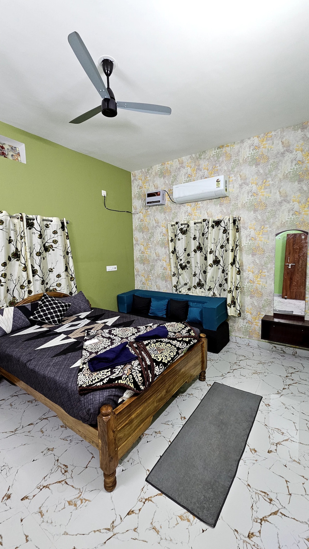 歡迎來到我們舒適時尚的 1 間臥室公寓!公寓非常適合情侶、獨行旅客或四口之家。 位置:步行10分鐘即可抵達海灘,步行30分鐘即可抵達Shree Jagannath寺。公寓位於大樓的三樓,從屋頂可欣賞海景和寺廟景觀。 房源 -主臥室配有雙人床,客廳配有沙發床,方便使用 -空調、淨水器、冰箱、間歇泉和其他必要的家居用品。 -提供小型摩托車/自行車/汽車租賃。