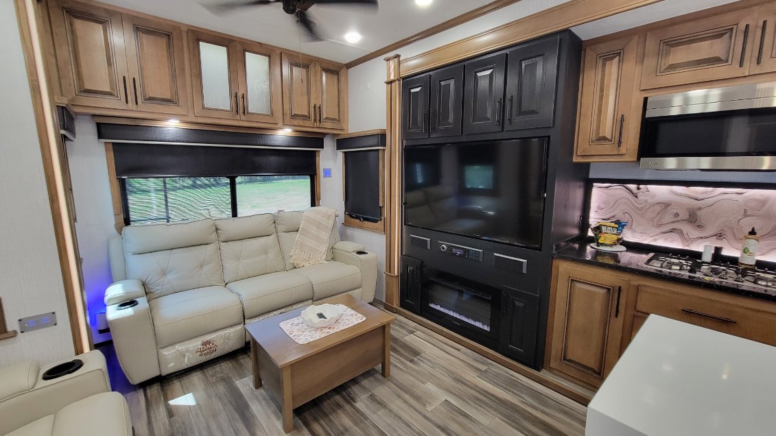 This cozy luxury RV is located near the State Botanical Garden, Georgia Theatre, Classic Center, University of Georgia, and Sanford Stadium. This is a great place to stay for couples, solo adventurers, business travelers, families (with kids), and furry pets. The kitchen is nicely equipped with a dishwasher, two stoves, 3 gas burners, microwave and full-size residential frig. Bedroom comes with a king-size bed and TV, and bathroom, on-demand hot water, a washer & dryer, and a walk-in closet.