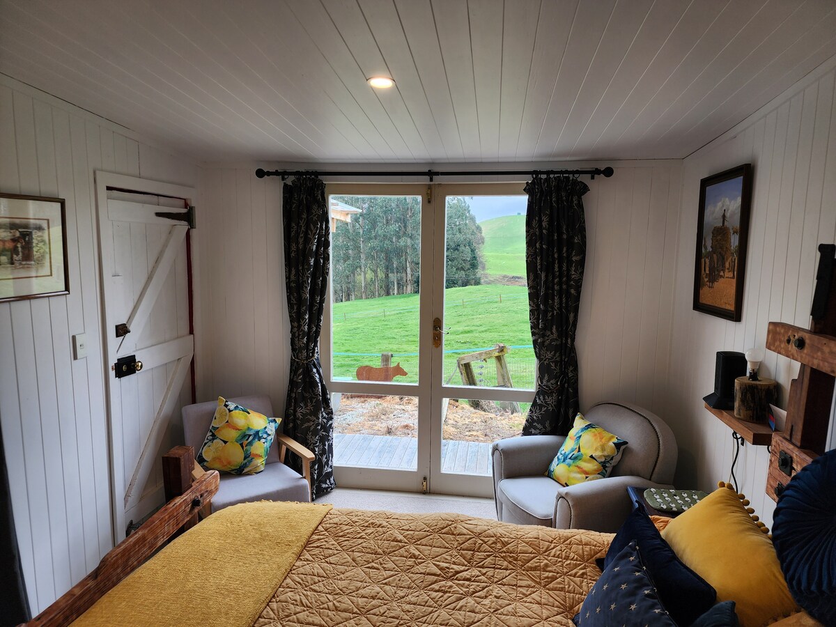 Converted woolshed, set on a small farm of 25 hectares. We have cows and horses. We are 15 min from Taupo town. The Woolshed is separate from our home, giving you privacy during your stay. From the deck area/French doors all you will see is farmland! We are directly off SH1, down a long drive way, making this a great location for those wanting a place to stay during a road trip, but also quiet and peaceful if you want a few days away!