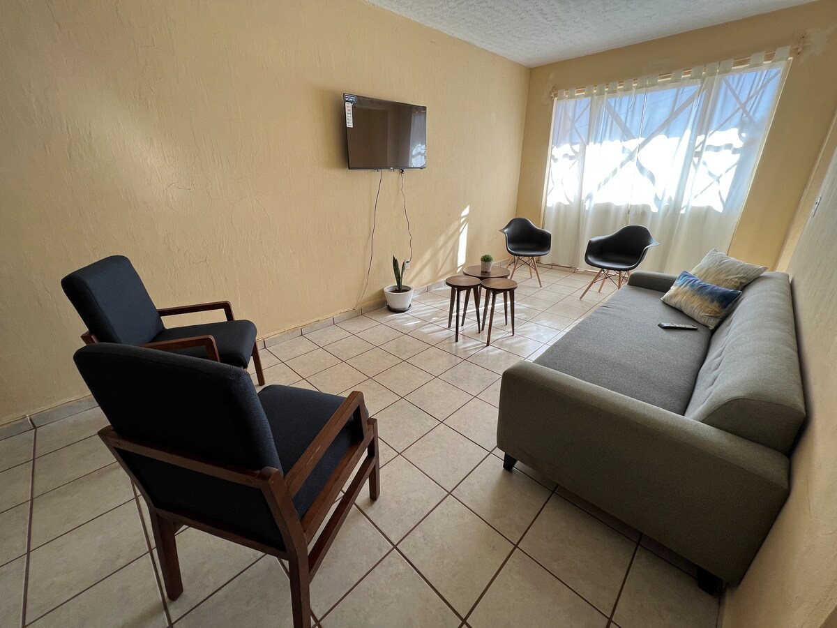 Departamento de una recamara con baño completo, Aire acondicionado , wi-fi , cocina totalmente equipada y sofá cama en la sala de estar, sin precios adicionales por limpieza. Se encuentra en la mejor zona de la ciudad cerca de restaurantes, bares y entretenimiento nocturno. A 5 minutos del centro de la ciudad.