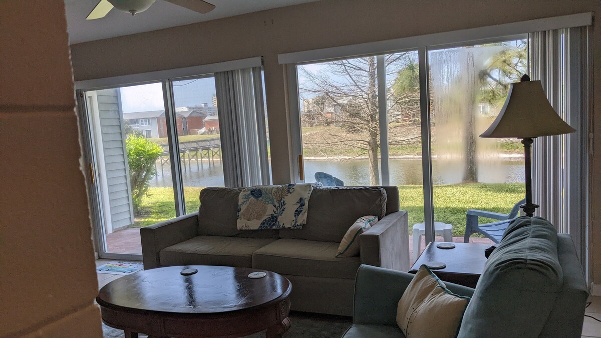 裝潢精美的一樓公寓,非常適合您的海灘假期。 公寓可舒適入住4人,配有大牀和全尺寸愛情座椅睡牀,配有記憶海綿牀墊! 如果您喜歡烹飪,公寓有設備齊全的廚房,但如果您不想,附近有幾家可欣賞水景的餐廳。 不到10分鐘即可抵達奧卡盧薩島( Okaloosa Island ) ,欣賞白色沙灘、海灣水族館海洋冒險公園( Gulfarium Marine Adventure Park )或野生威利斯冒險區( Wild Willies Adventure Zone ) !立即預訂!