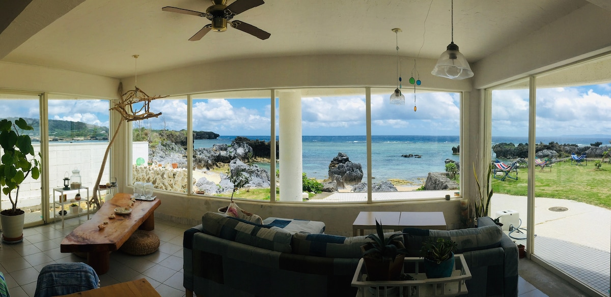 這是一個完美的位置,您可以看到上帝之島,在那裡您可以治癒身心。 太陽升起,滿月照耀在海面上。 步行約5分鐘即可抵達海灘。 由於我們沒有廚房,我們有一個熨鬥盤和磁帶爐,供那些想在桌上燒烤的人使用。請自備食材。如果您願意,我們也可以在這裡提供。這個街區只是一間私人住宅,因此開車約10分鐘即可抵達附近的餐廳。 早餐每人1000日元。如果你想使用它,請在前一天下午7點前發送訊息給我們,讓我們知道你是否想要日式或西式食物和時間(從上午8: 30開始)。 雖然房間與我的居住地分開,但我會住在那裡。 房源內還有一個遊泳池,因此您可以遊泳。 請注意,由於周圍有很多大自然,因此有很多昆蟲。 從那覇機場開車約40分鐘。您也可以乘坐巴士來,但我們建議租車。 如果您願意,我也可以向您介紹租車。 如果你需要兒童日式床墊,請以旅人身份預訂。 如果您沒有預訂,我們只會為預訂的旅人人數提供日式床墊。