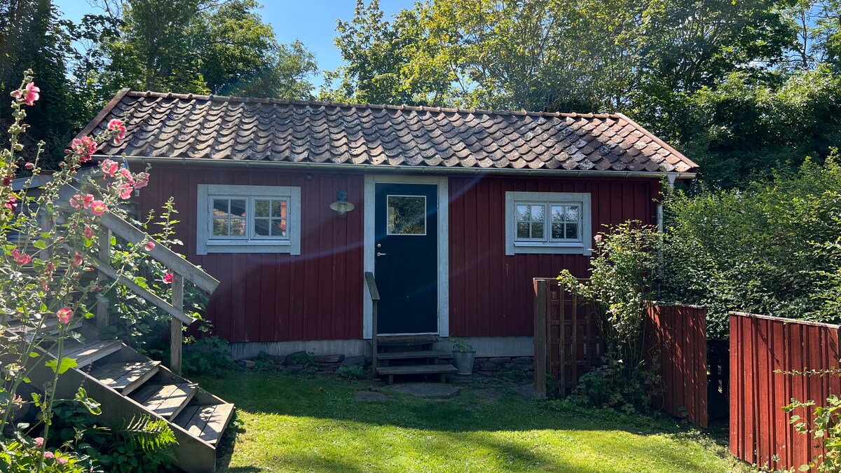 Centralt beläget gårdshus i pittoresk gammal miljö på torget där husen ligger tätt.Gångavstånd till fik, mysiga butiker, hav, hamn och skog. Gårdshus nära ägarbostad med ett rum och kokvrå.Badrum med dusch. Det finns en 140 cm säng och en liten bäddsoffa på 110 cm som passar till små barn. Katter finns på tomten och Katter o hundar vistas i huset ibland så inget för allergiker. Medtag egna lakan och handdukar alt. hyr för 75 kr per person. Nivåskillnader o trappor på tomten. Man städar själv.