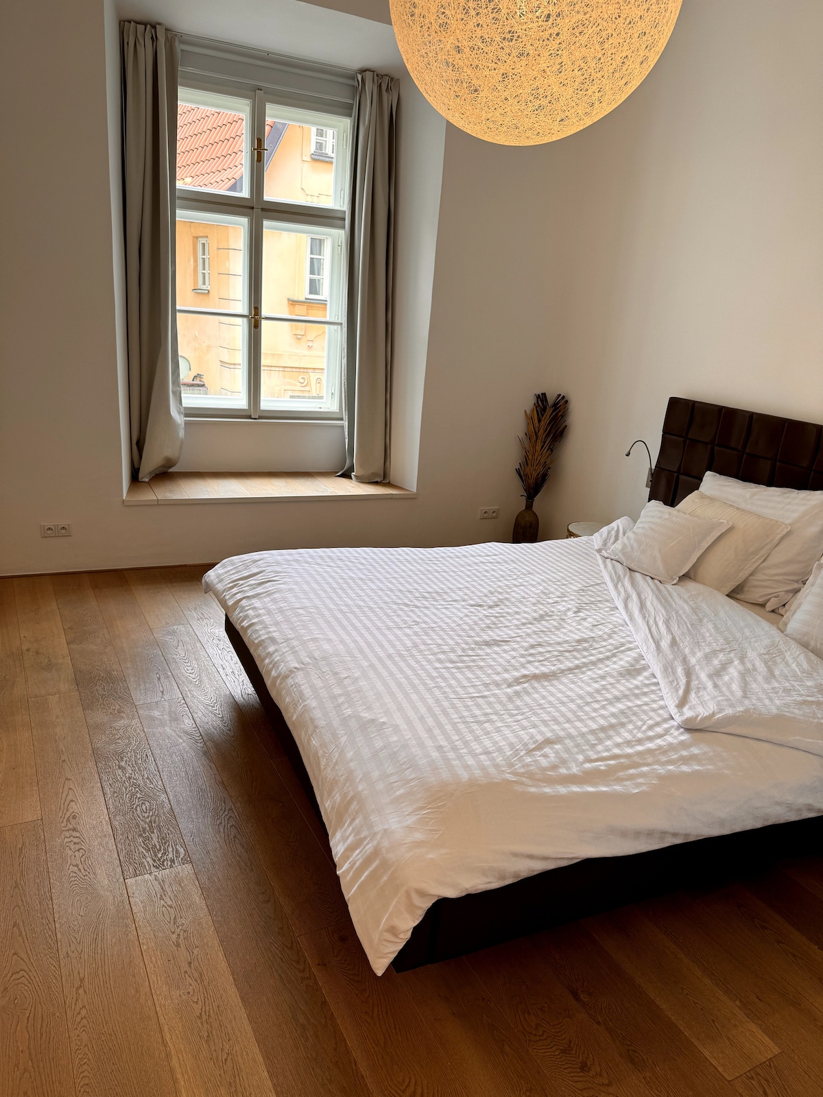 公寓是一間設計師現代公寓,位於布拉格一棟美麗的建築內,位於布拉格市中心-布拉格舊城區-城市最歷史的部分,位於一條美麗的通道內,充滿餐廳和商店,但非常安靜 這棟建築的歷史可以追溯到12世紀,但最近已經翻修。 公寓配有1張特大雙人床、1 張沙發床、設備齊全的廚房、空調、智慧電視、高速網路