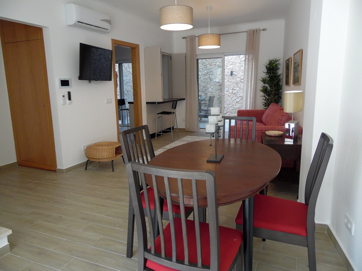 Newly renovated +refurbished 2025 Duplex for up to 3 adults 2 Bedrooms /2 Baths upstairs Living, Dining, Kitchen and Guest Bathroom on main floor. 5 Terraces w/ Seating at Each Room East /West exposure so you have Sun all day, but also shade if you prefer 134 m2/1400 sq feet total 100 m2/1050 sq. feet inside 2.5 Baths (two 4 piece Ensuite) Guest WC on main floor 2 Pools, Sunchairs Parking Close to Everything 3 Beaches, Shops, Restaurants, Public Transit and only 30 min. from Faro airport