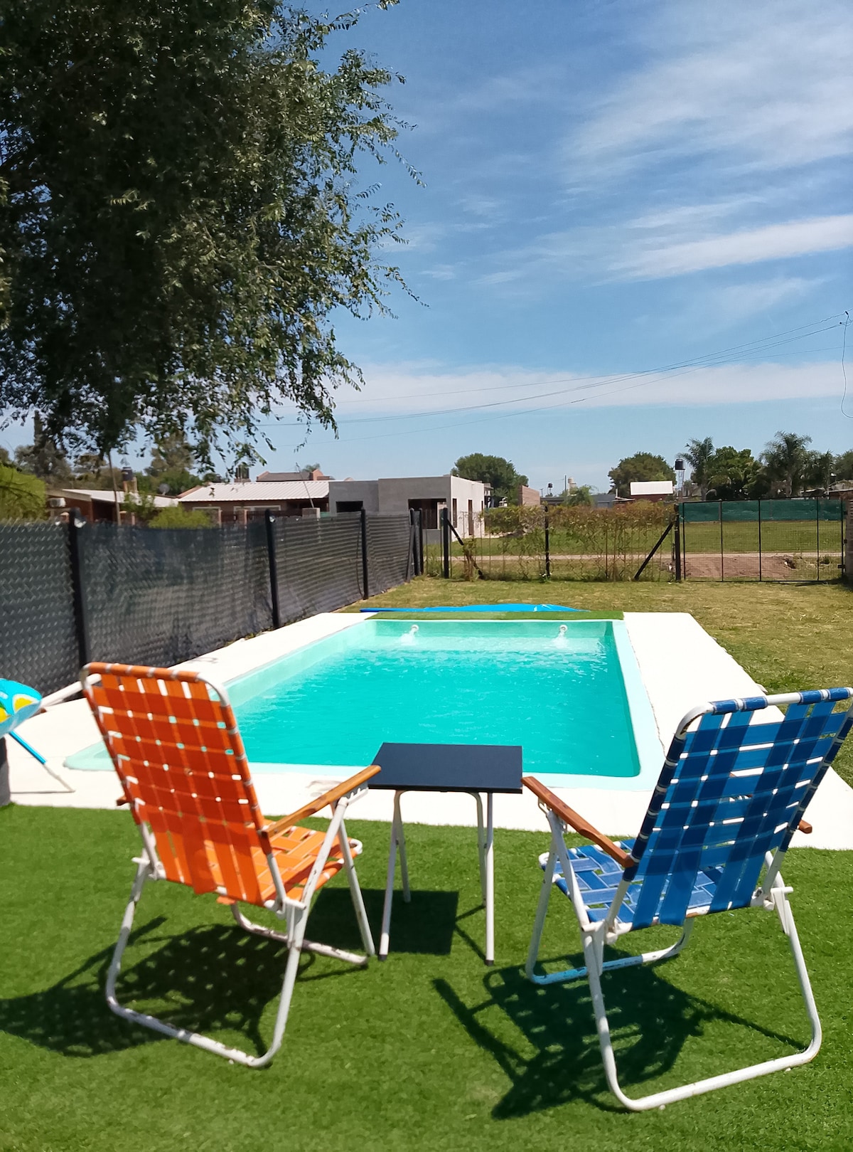 🏡 ¡Casa de campo entera con pileta! 🛌 2 Habitaciones + 2 Baños (uno en suite). ❄️ Aire acondicionado gigante nuevo en el living cocina conedor y en ambas habitaciones. 🛀🚿 Bañera y ducha con excelente presión de agua fria y caliente. 👨🍳 Cocina completa con horno, parrillero gigante, fogonero y disco de arado grande para cocinar lo que el campo te inspire ! Además tenes licuadora, cafetera, tostadora y pava eléctrica. 💦🏊 ¡Pileta en la casa!
