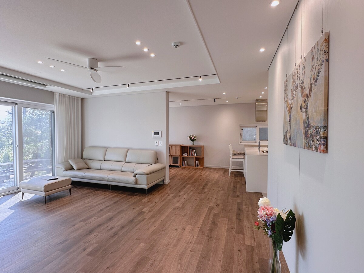 新開放的家庭型3房住宿最多可容納8人。 步行10分鐘即可抵達機場鐵路站,因此仁川機場交通便利,靠近Inspire和Paradise Resort ,因此觀看表演和節日後放鬆身心。 大樓前面有一個免費停車位(最多3輛車)和一個電梯,因此出行很方便,位於咖啡館街的中心,因此您可以享受各種餐廳和咖啡館。 -臥室# 1 : 2張超級單人牀 - 睡房2:特大床 - 睡房3:加大床 最多可容納8人,最適合6人入住。 入住6人或以上可提供床單。 [設備與服務] -廚房:微波爐、電熱水壺、咖啡機、瓦斯爐、冰箱、電鍋、冷熱水機 - 2間浴室:坐浴盆/洗髮水/護髮素/沐浴露/洗手液/酒店提供40條毛巾/2個吹風機/直髮器 -客廳:現代化梳化和6-8人木桌/椅、Netflix、YouTube -提供洗衣機和烘衣機