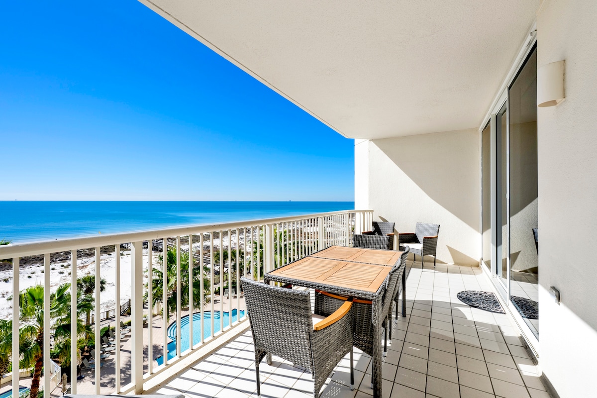 2 bedroom 2 bath condo in Phoenix VI, sleeps 8. Perfect location with oceanfront views on 14th floor. This unit boasts impressive views of Perdidio pass, so you can enjoy watching the dolphins from your beach front balcony. Bedroom 1 ( king bed) Bedroom 2 ( 2 queens) Sleeper sectional with pull out memory foam mattress. Amenities include (indoor/outdoor pool, sauna, fitness center, racquetball court, and tennis/pickleball courts) * $55 parking pass required at check-in.