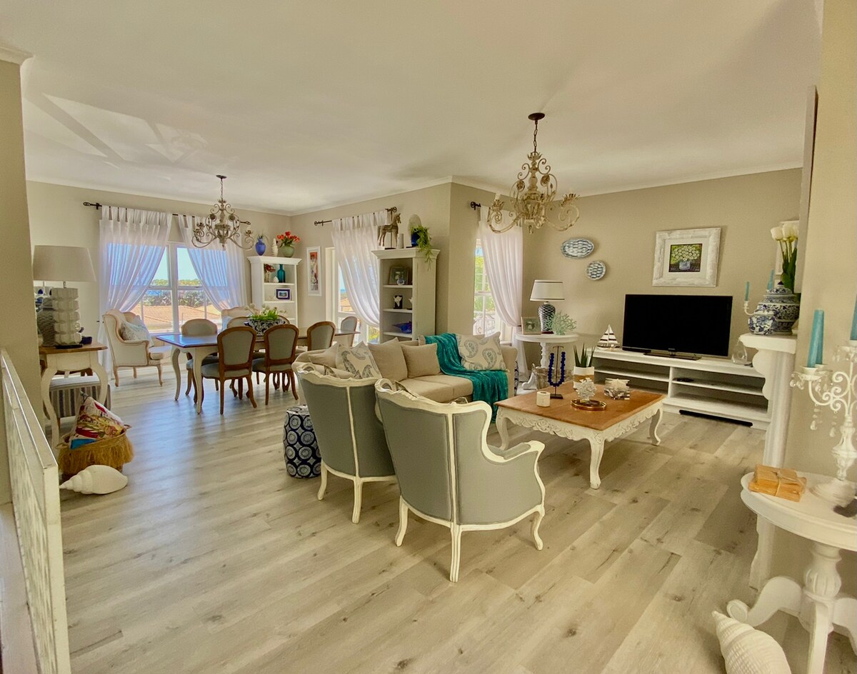 美麗的赫曼努斯(Voëlklip)的一間或兩間套房臥室公寓。寬敞。主臥室、浴缸和淋浴間。單人床臥室,僅淋浴間。步行7分鐘即可抵達海邊和山區。 遠程控制安全門進入公寓。 靠近入口的安全停車位。 車庫可供汽車或拖車使用。 警報器。設備齊全的廚房。 私人室外烤肉區,配有桌子和遮陽傘。
