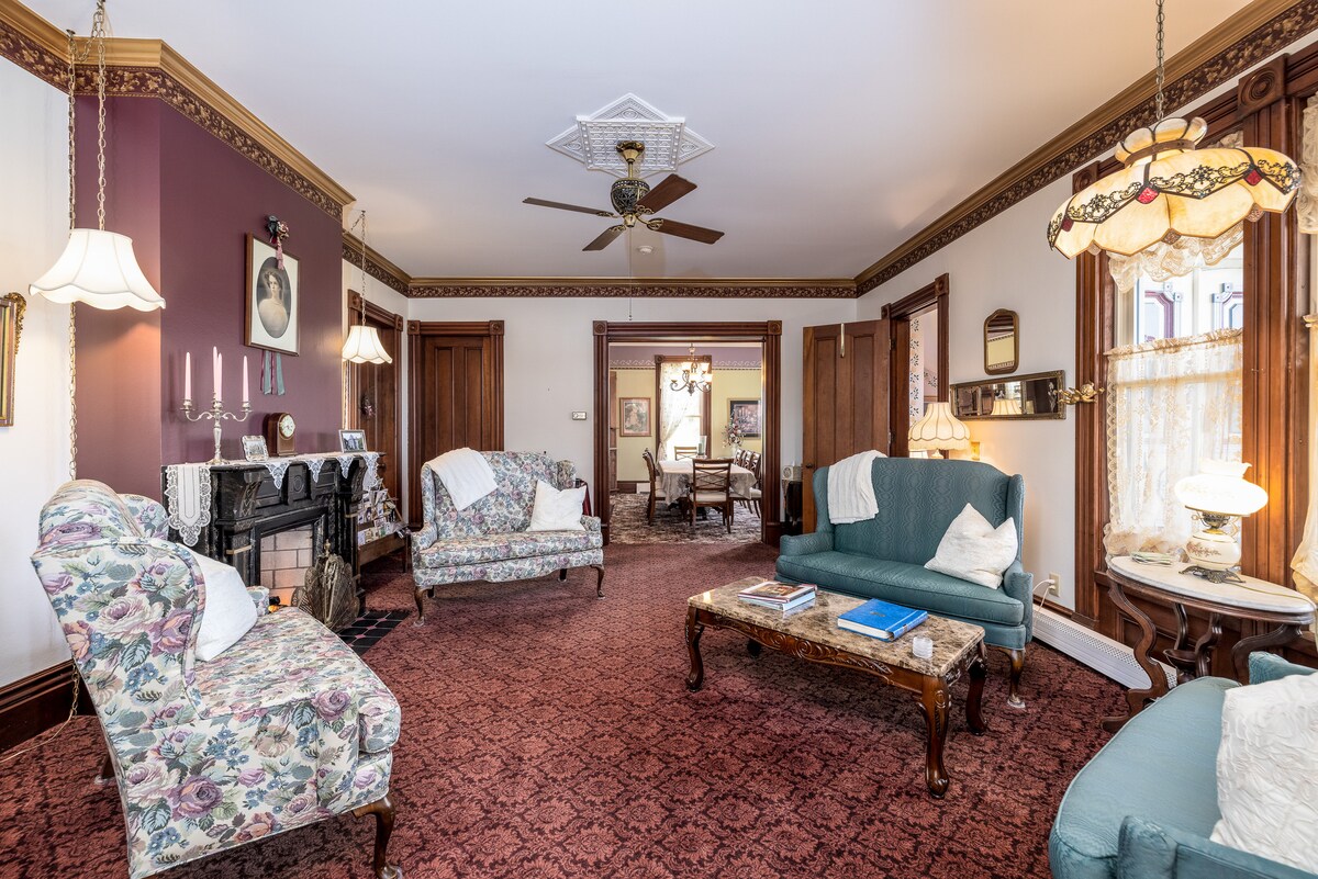 Henry’s Haven is a well-appointed retreat. An antique iron plush king size bed allows you to lounge on the bed and warm yourself near the charming romantic electric fireplace. Curl up in the armchair with a good book or watch your favorite movie in bed. The room has an extra-large closet and a private bath with a tub/shower combination and wall mounted heater for your personal comfort.