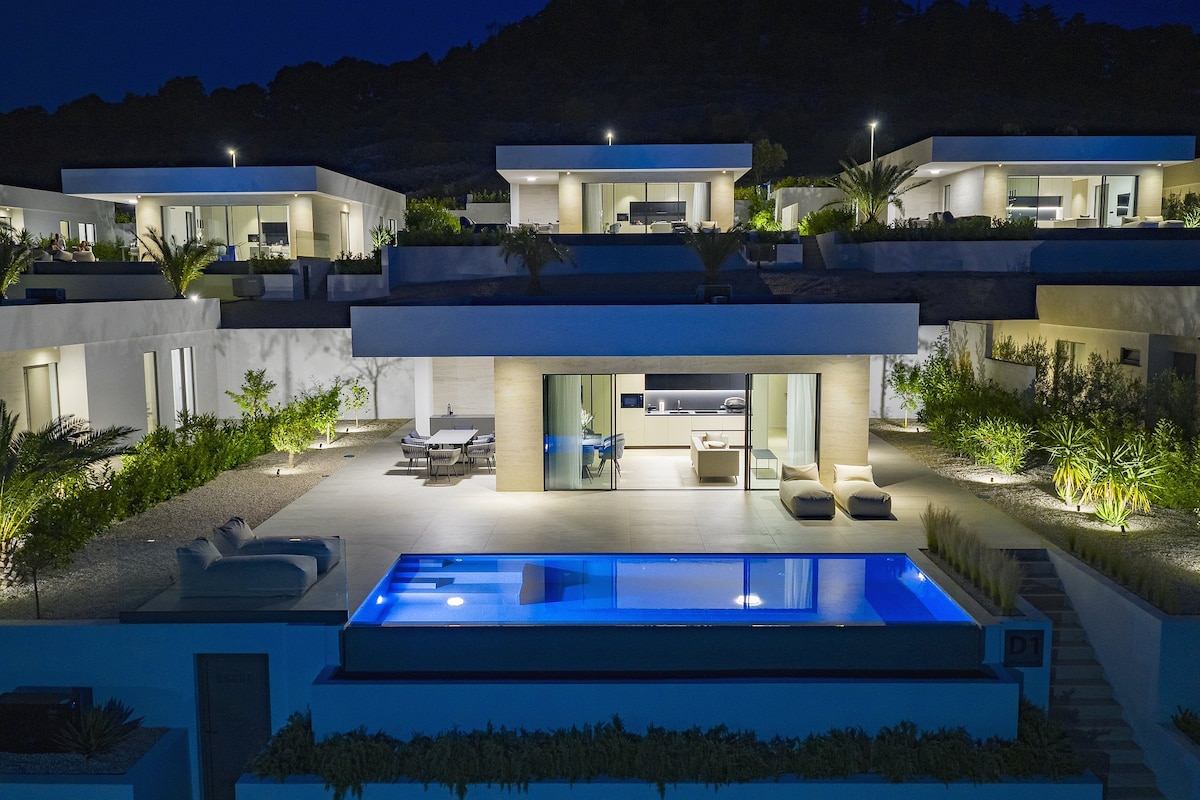 從別墅的露台上欣賞地中海的壯麗景色。 安靜的海灘在步行距離內。 配備所有設施的頂級現代新屋,讓您享受完美的住宿體驗。 在私人溫水泳池旁放鬆身心,喝一杯或在按摩浴缸中放鬆身心。 寬敞的露台上設有室外廚房,配有燒烤設施,讓您徘徊到深夜。