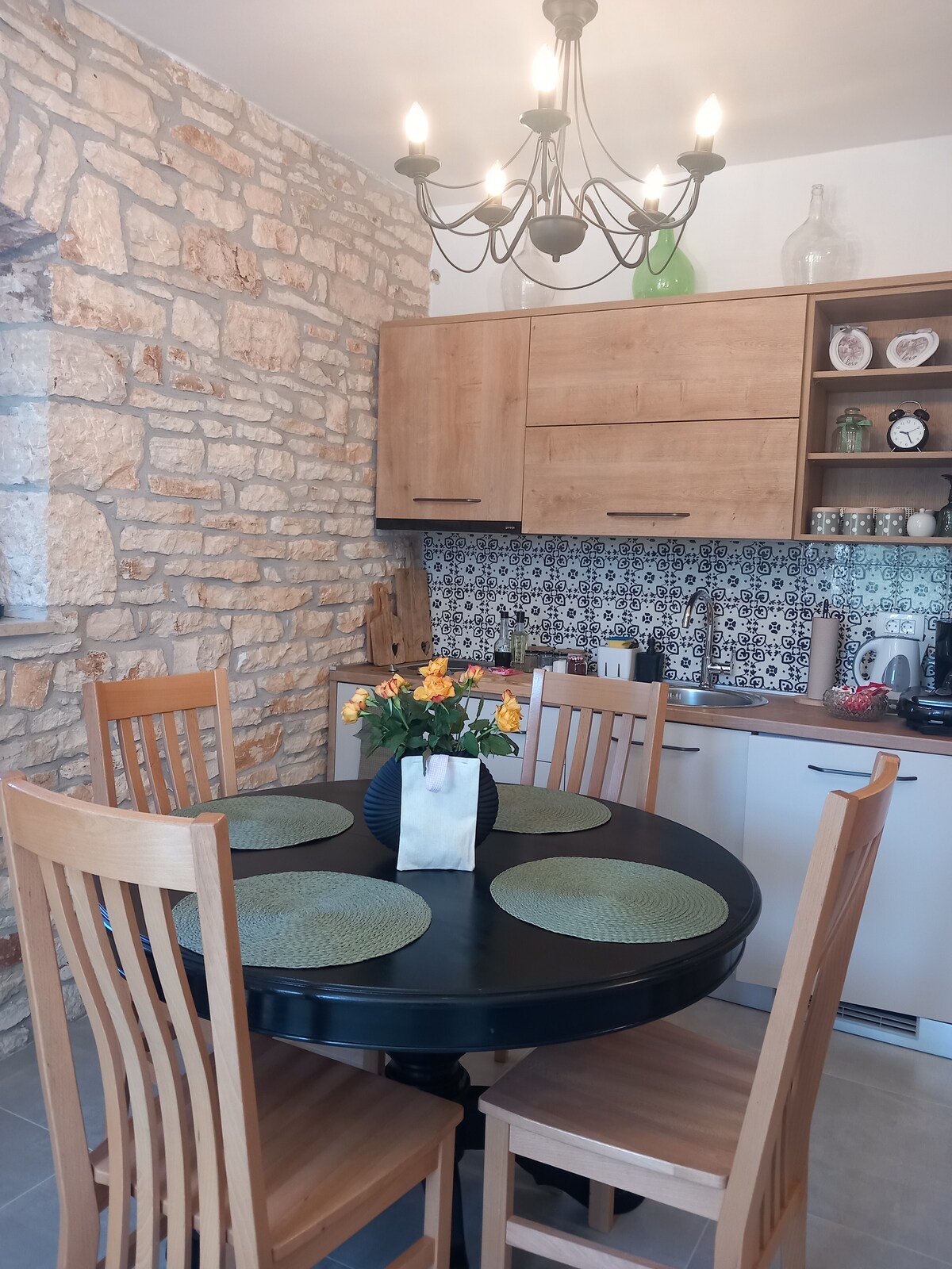 Charming and cozy apartment arranged with love and respect of nature and tradition. Natural colors, artistic and historical elements make this place unique as the experience of staying here. You can enjoy a green yard in front of the house and use the terrace for your meals or just relaxing. The position is perfect for exploring the wonders of the Istrian peninsula and even wider. NEW! From 2023. the apartment has one bedroom, perfect for a couple. Other two persons can sleep on the sofa.