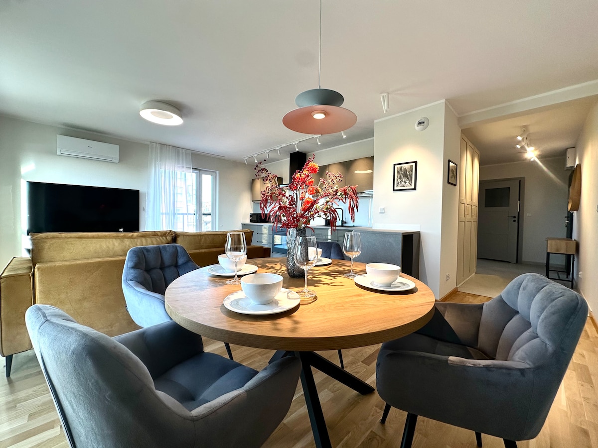 位於弗羅茨瓦夫市中心的全新豪華公寓。位於一棟全新的現代公寓大樓內,配有電梯。安靜、安全且位置優越。步行幾分鐘即可抵達市中心。寬敞的陽臺,景觀令人驚嘆。 距離主市場 400 公尺。 免費高速光纖 WiFi、55 吋 4K 智慧電視、空調。 免費地下、安全且監控的停車位!