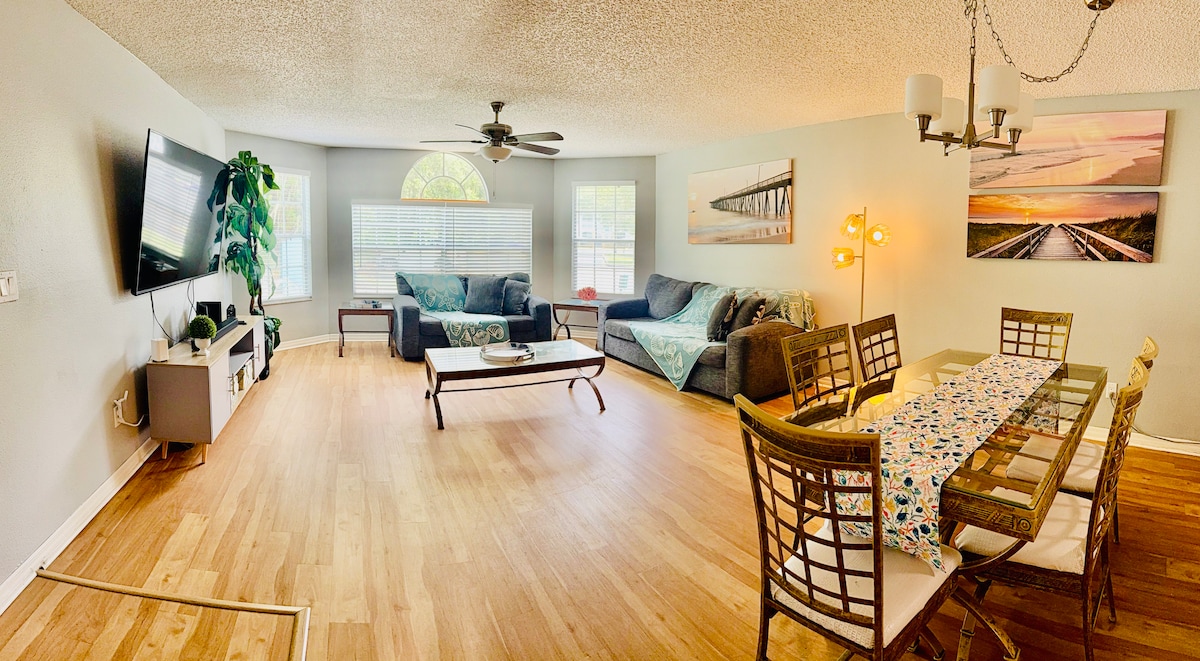 Discover luxurious comfort at the beautiful Island Paradise home. For your vacation we provide the best family friendly tropical getaway. The entire Townhome is crafted with intentional love. We will enhance your vacation by feeling right at home paired with our amazing amenities that exude an all inclusive resort like experience: waterpark, beach volleyball, basketball, poolside service for our restaurant and bar, kayaking, and mini golf.