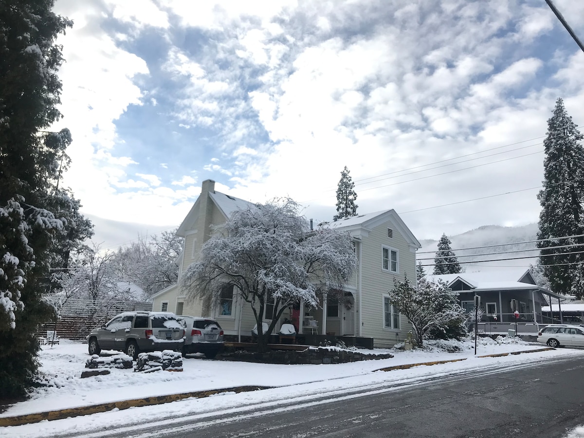 位於阿什蘭主街的全新改造和設計的樓下地下室公寓。這個現代化的空間乾淨又安靜。每間臥室均配備高端床墊、床單、電視和浴袍。有很多書籍可供閱讀,也有桌遊可供娛樂。步行即可抵達市中心,您可以在那裡找到Lithia公園、餐廳、咖啡廳和購物商店!開車25分鐘即可抵達Mt Ashland和世界一流的山地車。步行即可抵達莎士比亞節。附近有很多漂亮的酒莊!