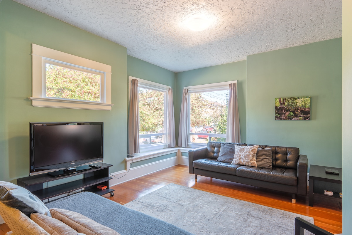 在經過翻新的維多利亞式房屋中,探索經典的波特蘭魅力,享受私密、明亮的低層公寓。享受寬敞的臥室、現代化的浴室和高高的天花板。穿過茂密的花園,在共用的後院放鬆身心。步行即可抵達會議中心、市中心和熱鬧的街區。高速WiFi (高達400mbps )非常適合工作或休閒,是您在波特蘭冒險的完美家庭基地!