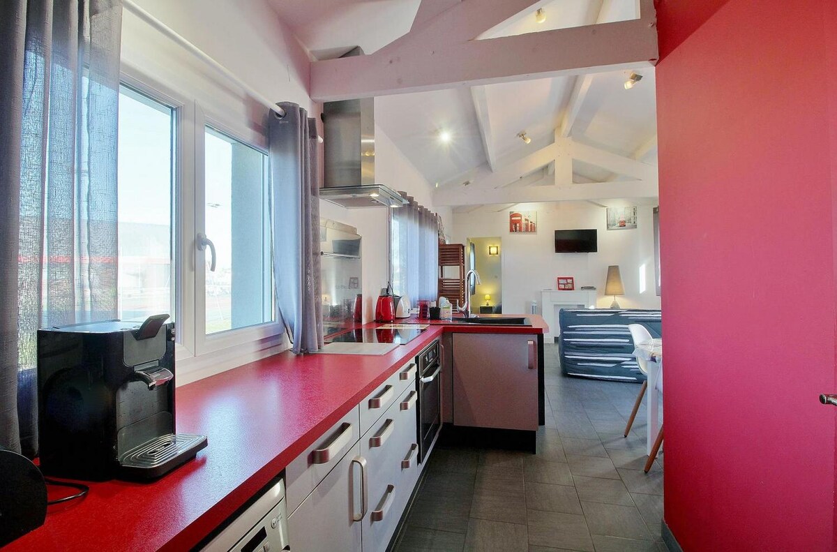 全新 80 平方公尺的小木屋,寬敞明亮,由我們親手建造和裝飾,位於我們主要住宅的林邊,但完全獨立。 您可以享用 2 個戶外露臺,其中一個位於樹林中,可享受私人水療中心的舒適時光。 這間住宿風格獨特,設備舒適,獨特的環境有利於放鬆。 週末可於下午 5 點抵達。