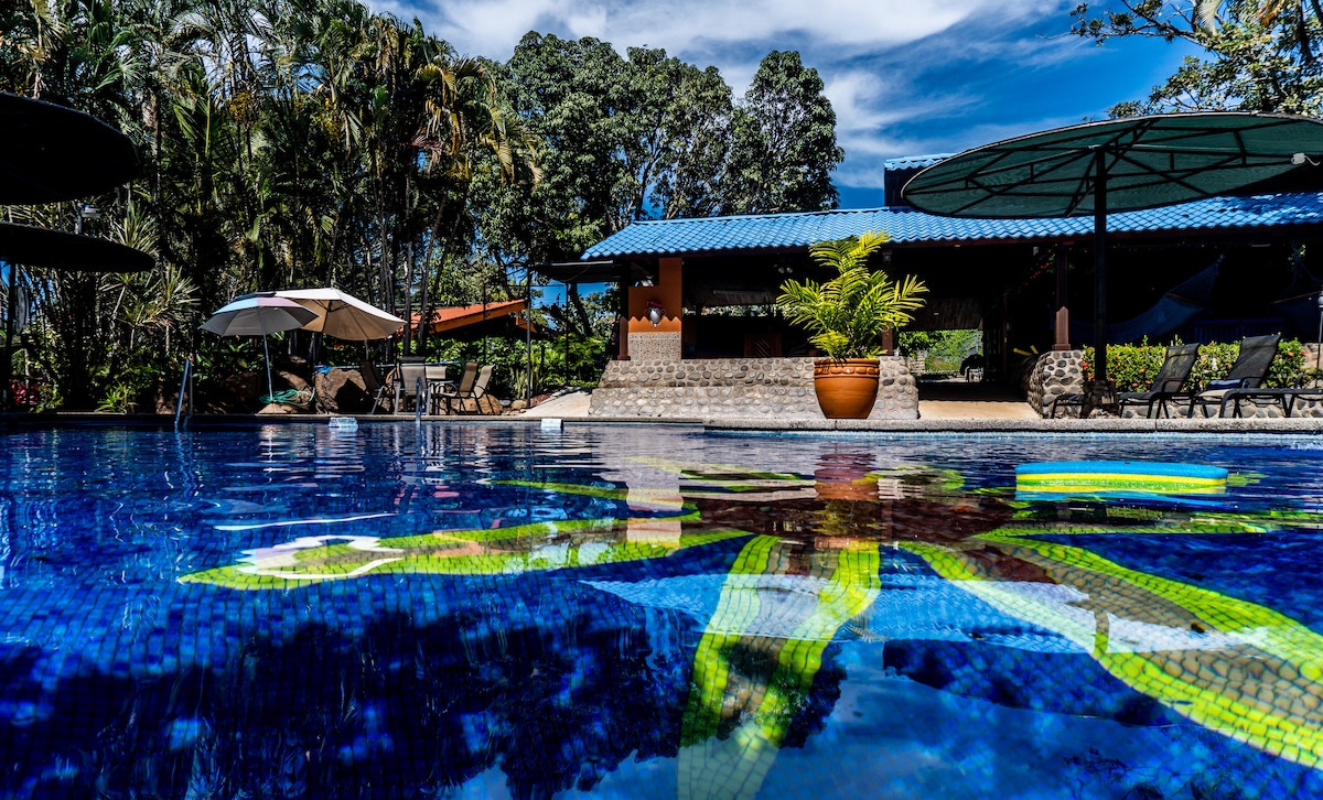 Chilanga Costa Rica距離聖荷西機場僅一小時車程,是開始或結束假期的完美地點。花點時間放慢腳步,放鬆身心,重回大自然的懷抱。 Ceibo是我們的私人、寬敞的豪華別墅,可供雙人入住。我們提供景觀極佳的游泳池、叢林瑜伽和10公里的步行小徑。超快的30兆WiFi讓您可以「在叢林中工作」。讓我們的廚師為您提供由當地和農場食材製成的美味佳餚。來參觀吧!