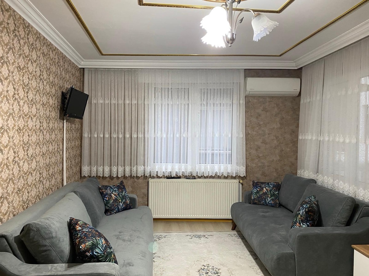 這個時尚的房源靠近必訪景點。 距離機場5分鐘路程。 距離Trabzon Forum 10分鐘路程。 附近有許多市場和咖啡館。我們的大樓建於2024年。