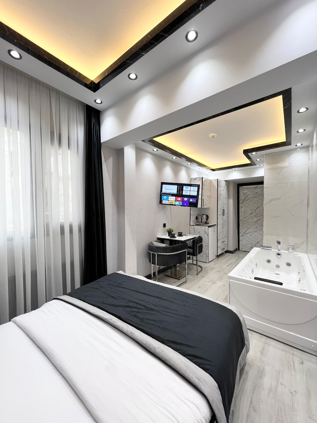 這間套房有私人小廚房和配有按摩浴缸的現代化浴室,套房有相當寬敞的窗戶,寬敞方便的布局,每3天有清潔服務,步行10分鐘即可從我們大樓到達歷史悠久的地方,您可以參觀老城區和商店的歷史悠久的地方。 大集市,聖索菲亞大教堂。Sultanahmet清真寺。Basilica Cistern、Topkapi Palace就是其中一些。 步行約7-8分鍾有電車站有電車站。