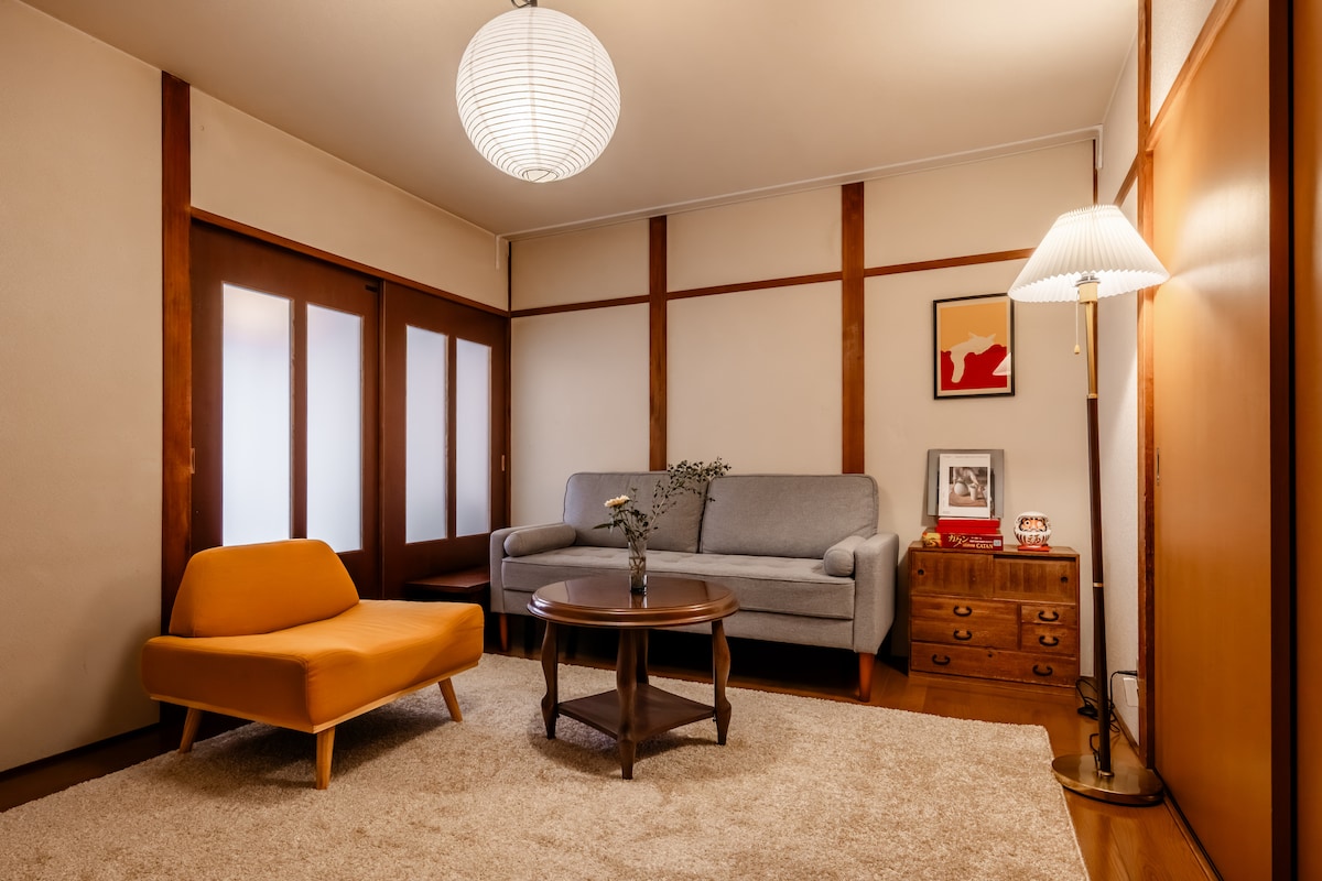 警告!!这座房子保留了许多原始特色,反映了其年代和历史。请注意,作为一座老房子,它有其独特之处,可能无法提供与现代化房产相同的舒适性或设施。 警告!!这座房子不适合幼儿或老人居住。房子内有两段陡峭的楼梯,可能对一些人来说难以攀爬。 • 有一个浴室。 • 主卧室有一张大床,其他床都是日式地铺的被褥。 难波:步行12分钟到车站,乘坐地铁10分钟。 心斋桥:步行12分钟到车站,乘坐地铁10分钟,然后换乘,地铁再坐一站。