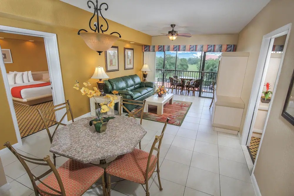 豪華3間臥室、2間浴室公寓,可欣賞高爾夫景觀,免費使用水上公園。 我們美麗的房源距離冠軍門度假村的迪士尼世界主題公園僅13英里,設施包括:2個泳池、漂流河、餐廳、健身房、商務中心、網球場,以及冠軍門鄉村俱樂部內部,該俱樂部在最好的高爾夫雜誌之一中被評為4.4。 可容納7人: 1張加大雙人床、1張加大雙人床、1張雙層床、雙人床+雙人床