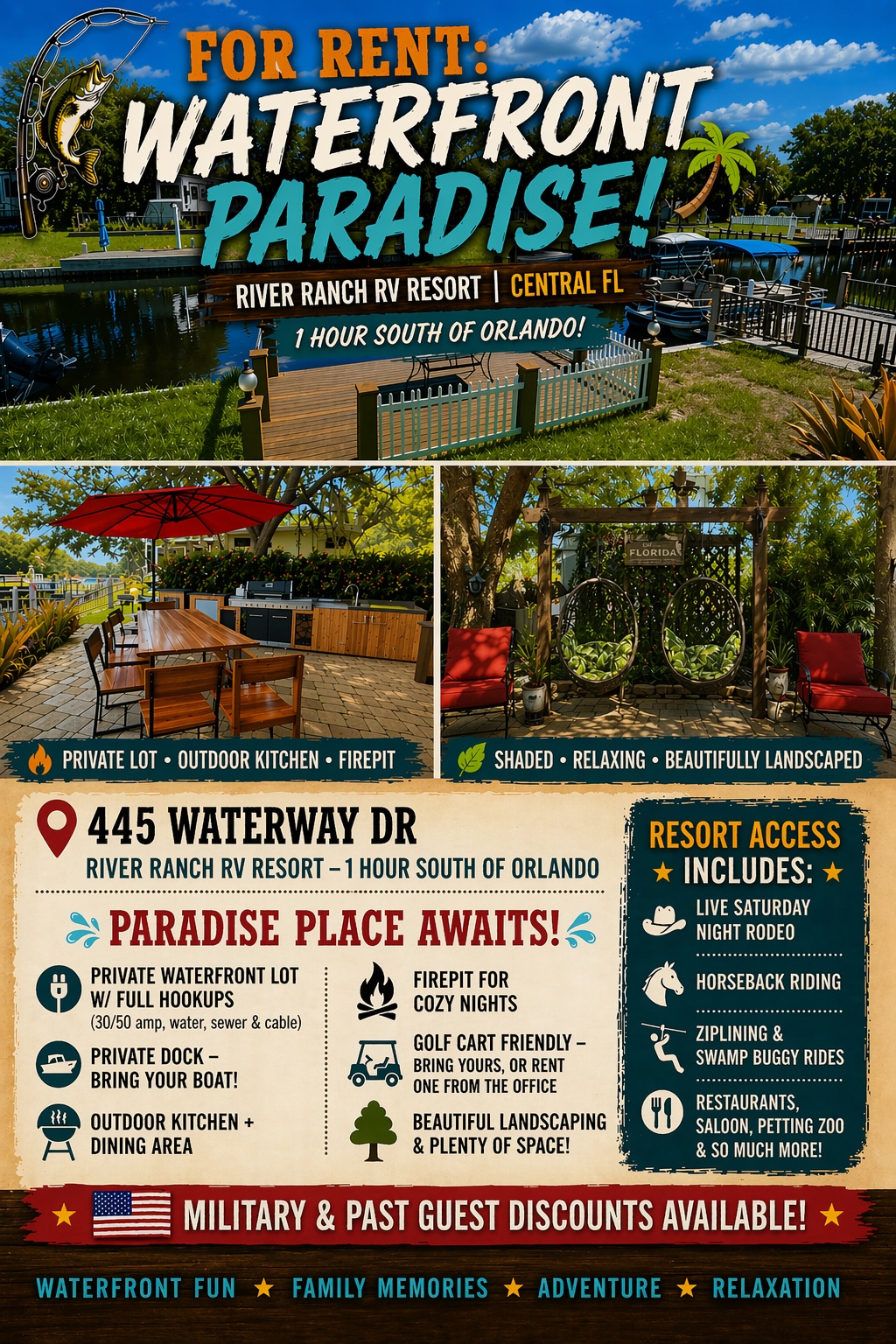 Paradise Place Waterfront RV Lot! River Ranch 445