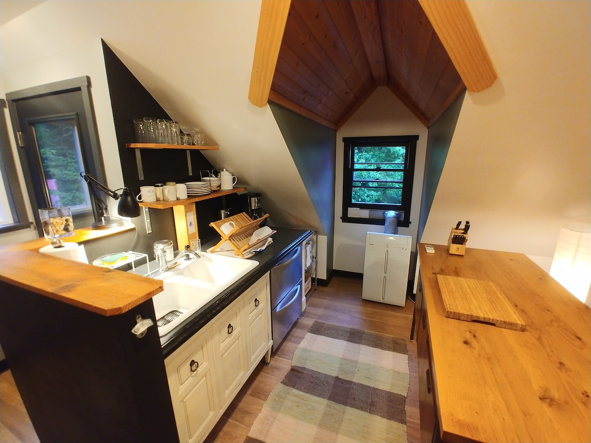 位於4000多英尺,步行10分鐘即可抵達杜鵑花步道上的小鎮。 2017年全面翻新!!光線充足且陽光明媚的3床/2浴室,750平方英尺。最初由我妻子的曾祖母在1940年代建造。地板到天花板的交錯接合、17英尺高的天花板、硬木、回收穀倉木材、定制固定裝置、加熱大理石/石板浴室地板、無水箱熱水器、瓦斯壁爐、門廊、WiFi、電視、洗衣機/烘乾機、小廚房。 美麗的花園!經典的高地魅力與現代舒適!遠足、釣魚、購物或放鬆!