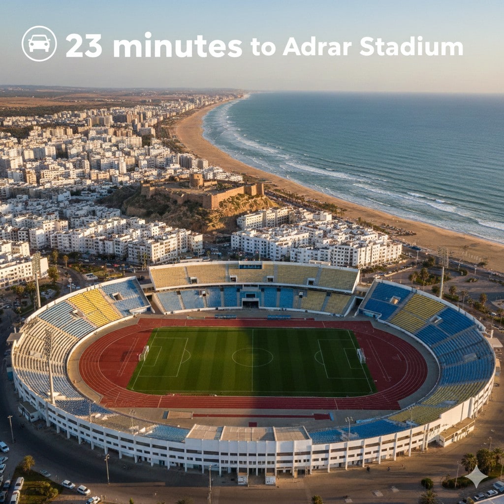 🏆⚽️ 2025年非洲盃,一起來玩吧!🏅⚽️🏆 現代化和寬敞🏠⛱️的房屋,非常適合家庭入住,步行7分鐘即可抵達阿加迪爾海灘。 享受安靜和安全的環境,靠近市內最負盛名的5星級酒店。 這間獨立屋提供您放鬆住宿所需的所有舒適設施:寬敞明亮的空間、3米x 3米x 1.20米深的泳池、現代化設施,以及位於海邊和設施之間的優越位置。