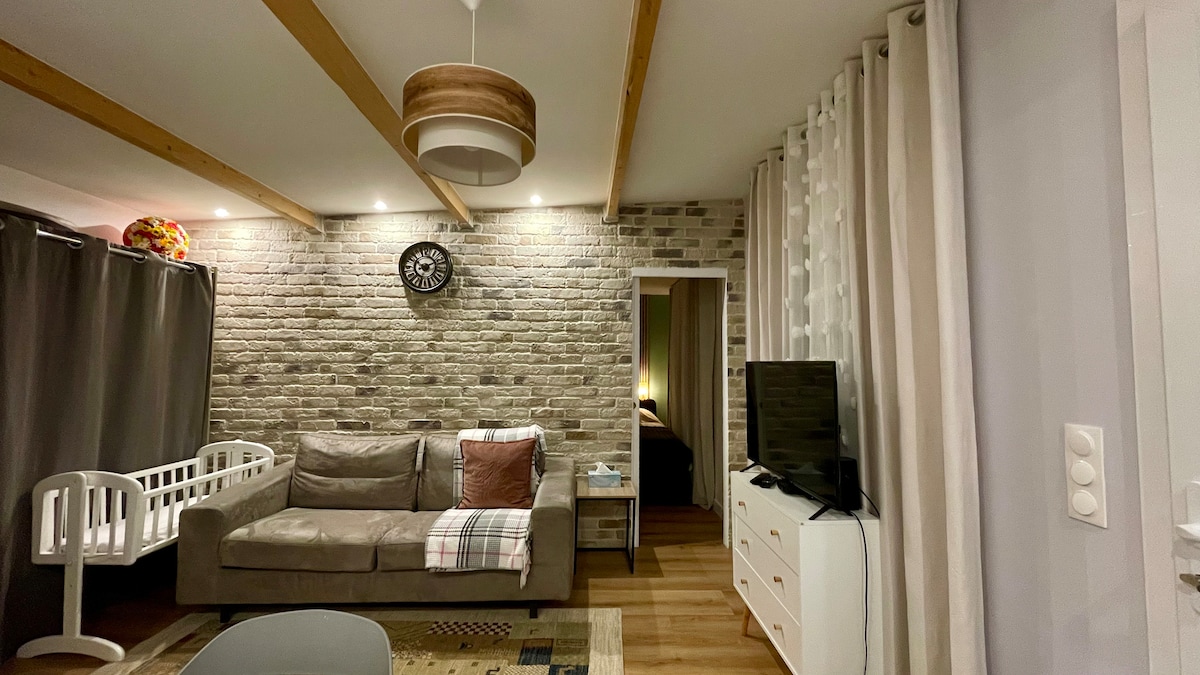 這個寧靜的住宿為全家提供了放鬆的住宿。 您將入住位於一樓的 54 平方公尺公寓,距離 Caen 市中心 15 分鐘,開車 25 分鐘即可抵達海灘,大樓底下有巴士站,步行 10 分鐘即可抵達電車站。 一切都準備好了,歡迎您來度過愉快的時光。 一張雙人床、Wi-Fi、設備齊全的廚房、淋浴間、一張沙發床(如有需要)可容納4人 提供床單和毛巾