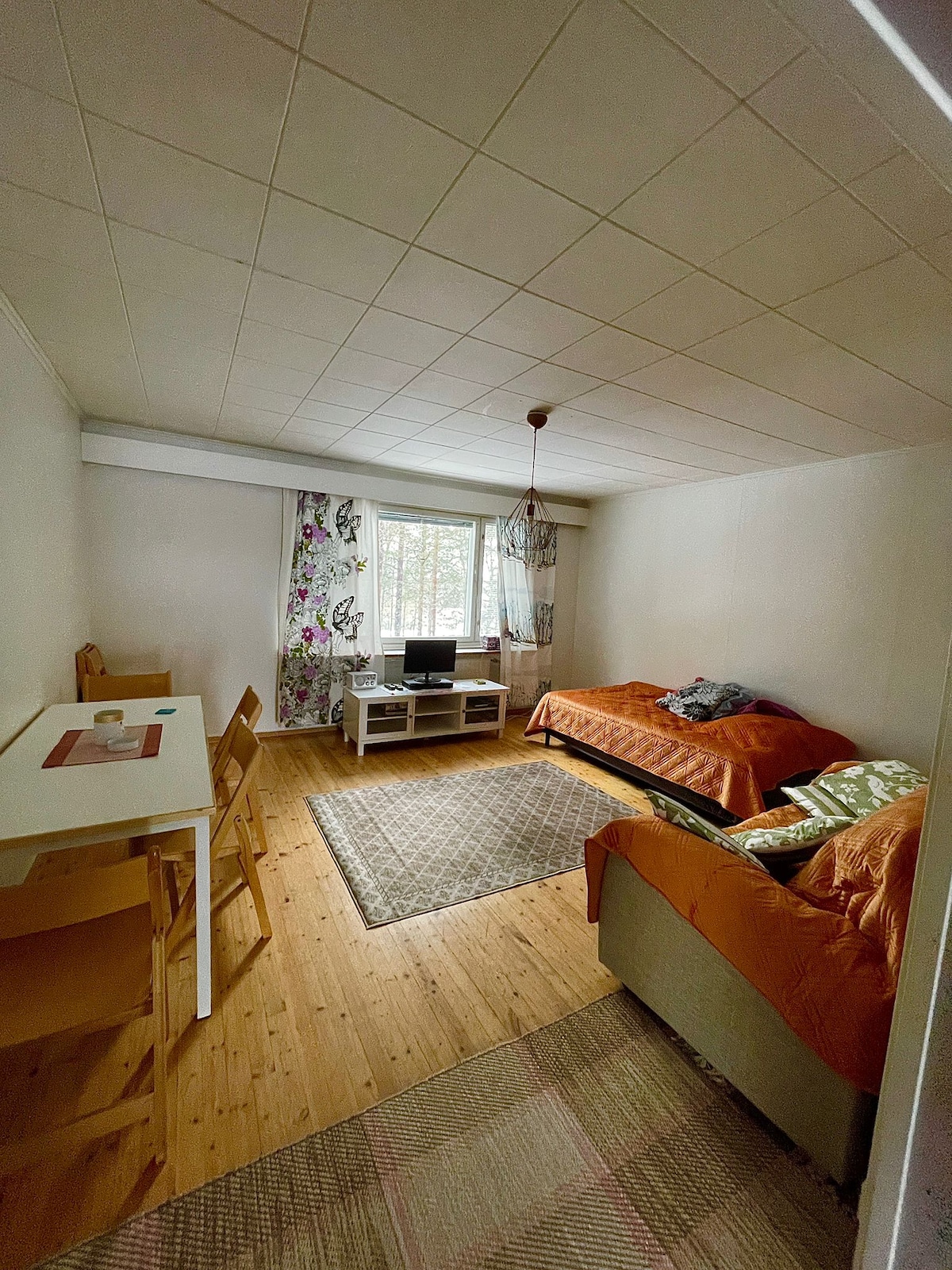 小屋位於伊約河岸邊,環境安靜。小屋可容納1-3人。 划船、游泳和釣魚的機會。 距離上岸馬場 6 公里,距離伊伊市中心 11 公里。 小屋內有壁爐和獨立的木柴桑拿房。小屋配有設備齊全的廚房和床上用品。價格包括木柴。床單額外收費 10 歐元/人。寵物根據協議收費 10 歐元/次。 按摩浴缸或室外按摩浴缸需額外收費100歐元。 承租人必須進行最終清潔。如果您沒有打掃,我們將收取80歐元的費用。
