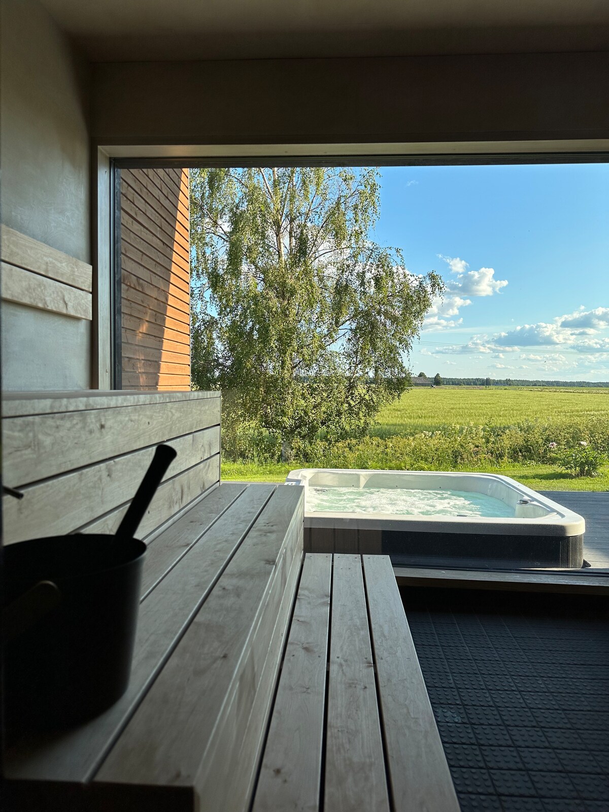 歡迎入住2022年竣工的獨立13平方公尺的桑拿房庭院。 在桑拿房,您可以享受柴火爐的蒸汽,並在可以擴展的沙發牀上過夜。 此外,大樓還有馬桶、淋浴間、冰箱、微波爐、水壺和露臺。 露臺上的浴缸可以以單獨的價格租用,加熱費用為120 €/1天,額外費用為40 €。 價格包括牀單、毛巾、桌布、最終清潔,如有需要,可提供停車位。