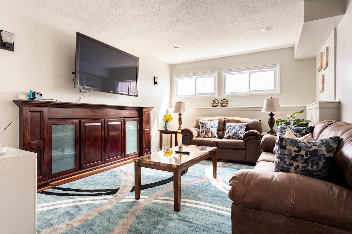 Private basement with two queen beds, couch, memory foam cot or air mattress (upon request), full bathroom, washer/dryer, coffee maker, toaster, microwave, snacks, mini fridge (no freezer), table, WiFi, and a TV (Roku and antenna). We will be upstairs during your stay. We are not loud but you will hear us walk around upstairs. There is a walkout door to backyard. You will be able to park in the driveway. Walkway to gate located on east side of house. Walkway to backyard is well lit.