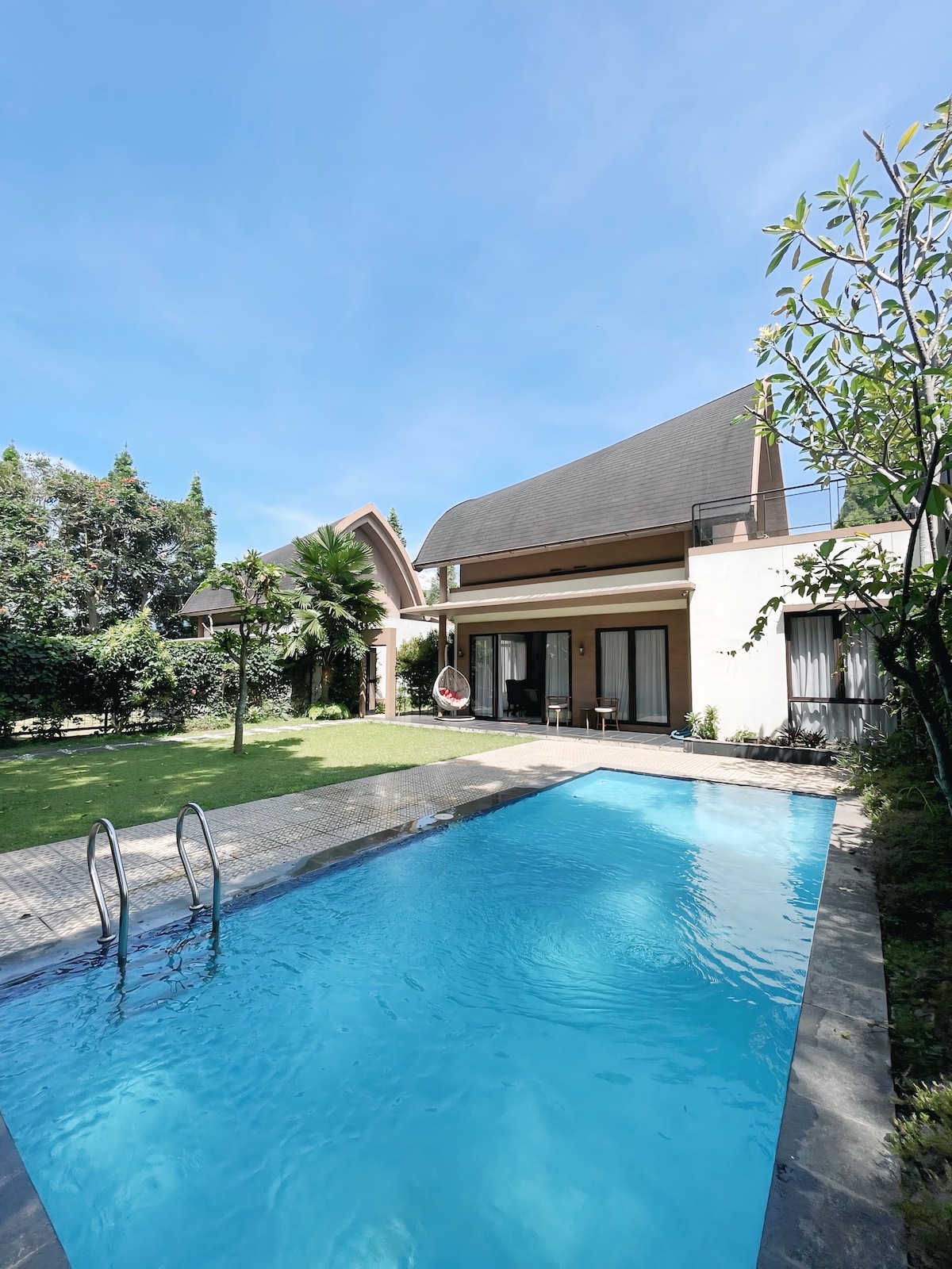 Relax, rejuvenate, and become inspired in our elegant private villa in the Puncak area of Jawa Barat, Indonesia. Including cosy beds, a fully equipped kitchen, modern bathrooms, free Wi-Fi & BBQ, hot water, and lively decor, the Villa is perfect for those who want to explore the area and enjoy its stunning landscape! Discover nearby waterfalls, lakes, and mountains or swim in one of the local pools! Perfect for vacationing families, staycation, and children or world travellers! Explore!