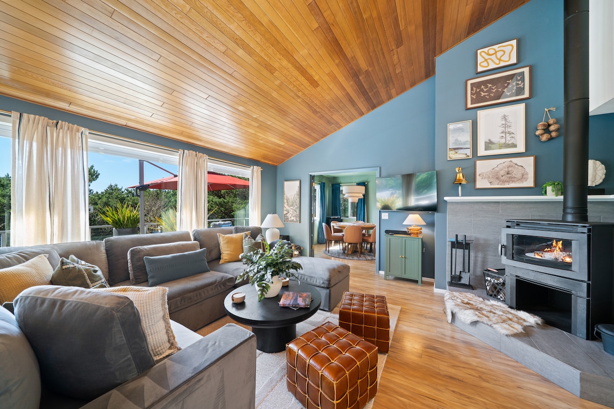 奧勒岡海岸的 AwayFrame | Hooray Stays 我們的1960年代「A」型房屋保留了中世紀風格,配備豪華現代的設備:桶狀桑拿房、私人按摩浴池和廚師廚房,確保您享受卓越的住宿體驗和放鬆。從美麗的設計和拱頂天花板到斯堪的納維亞壁爐,這個房源旨在讓您感到舒適,無論是在舒適的夜晚還是在沙灘上度過一天。步行即可抵達太平洋、商店和美食餐廳。一切都以房客為考慮,精心佈置