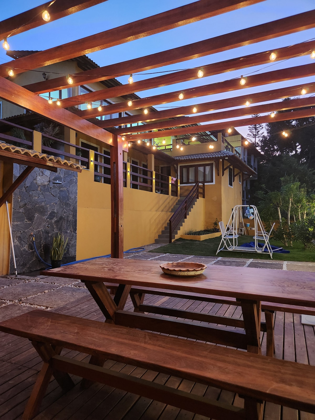 與家人一起在涼爽的山間空氣中恢復活力。 小屋位於Pacoti和Guaramiranga之間。靠近一切,位於Pernambuquinho區。2間臥室、3張床、額外的床墊和床架、大客廳、電視和Wi-Fi。 底樓有溫水淋浴間,廚房配備所有必要物品。 休閒區域,設有迷你泳池、甲板、燒烤。我們還有軟飲和冷啤酒。外部攝影機。 請參閱下方的其他選項連結。 airbnb.com/h/2em1