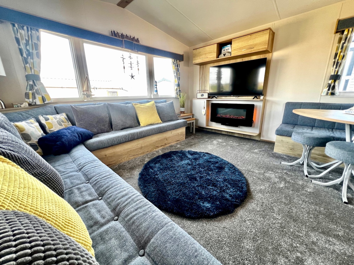 住宿詳情 -地點:託貝領先的公園之一 -類型:雙臥室大篷車 -特色: -客廳有雙人折疊沙發牀 -套房浴室至主臥室 -全環繞式露臺 -方便的停車位 額外費用:通行證 最多3晚的住宿費用為34英鎊,最多可供6位旅人入住 最多5晚的住宿費用為£55,最多可供6位旅人入住 最多6位旅人入住最多7晚的價格為66英鎊。 -付款方式: BACS ,抵達前
