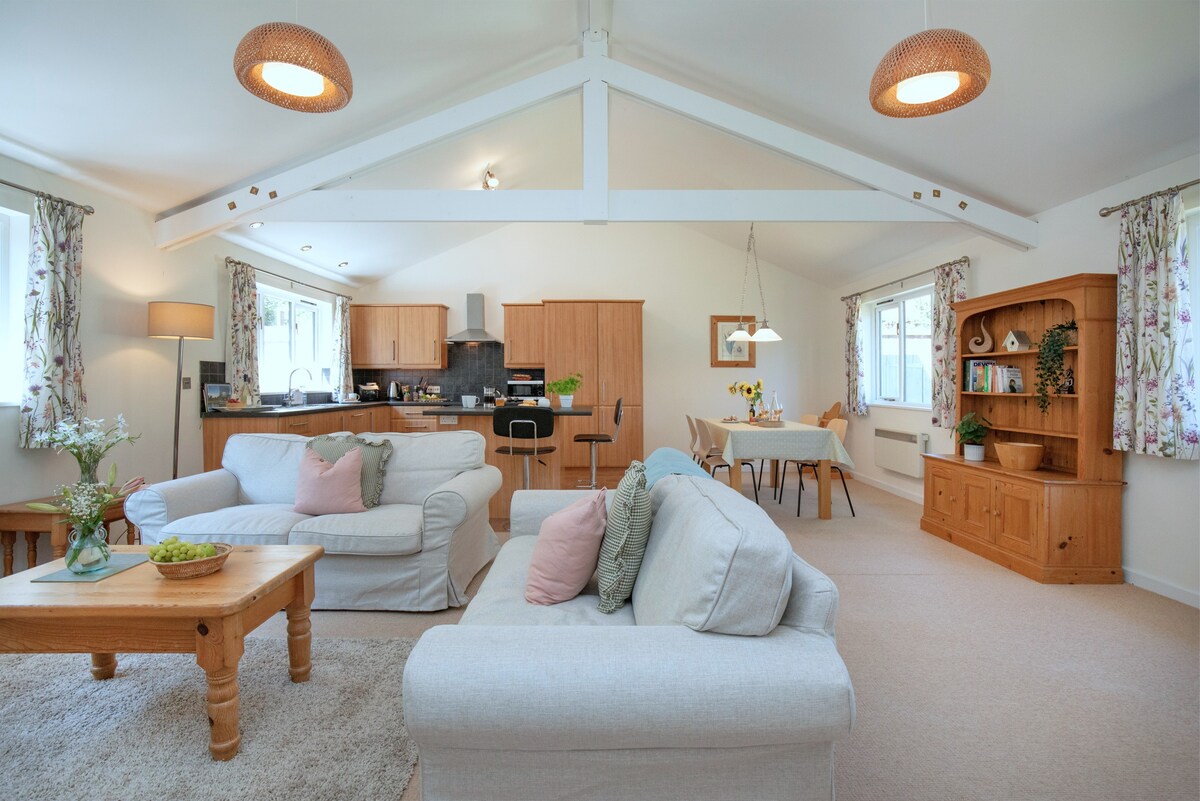 The Barn at Fingals擁有高聳的綠色橡木桶、擁有良好的沙發和時光復古地毯,是完美的家外之家。 它有落地窗,可俯瞰美麗的花園,讓自然光線充足,營造出寬敞、溫暖和鄉村風情的空間。 度假屋配有寬敞的開放式廚房餐廳和休息室區域,讓您可以一起烹飪、吃飯、喝酒和放鬆。 這裡還有一個有遮蔽的陽臺,因此露天用餐可以在卡片上下雨或閃耀。